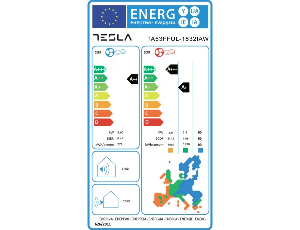 Κλιματιστικό Inverter Tesla TA53FFUL-1832IAW με Wi-Fi, ιονιστή, απόδοση 18.000 Btu και ενεργειακή κλάση Α+++ / Α++