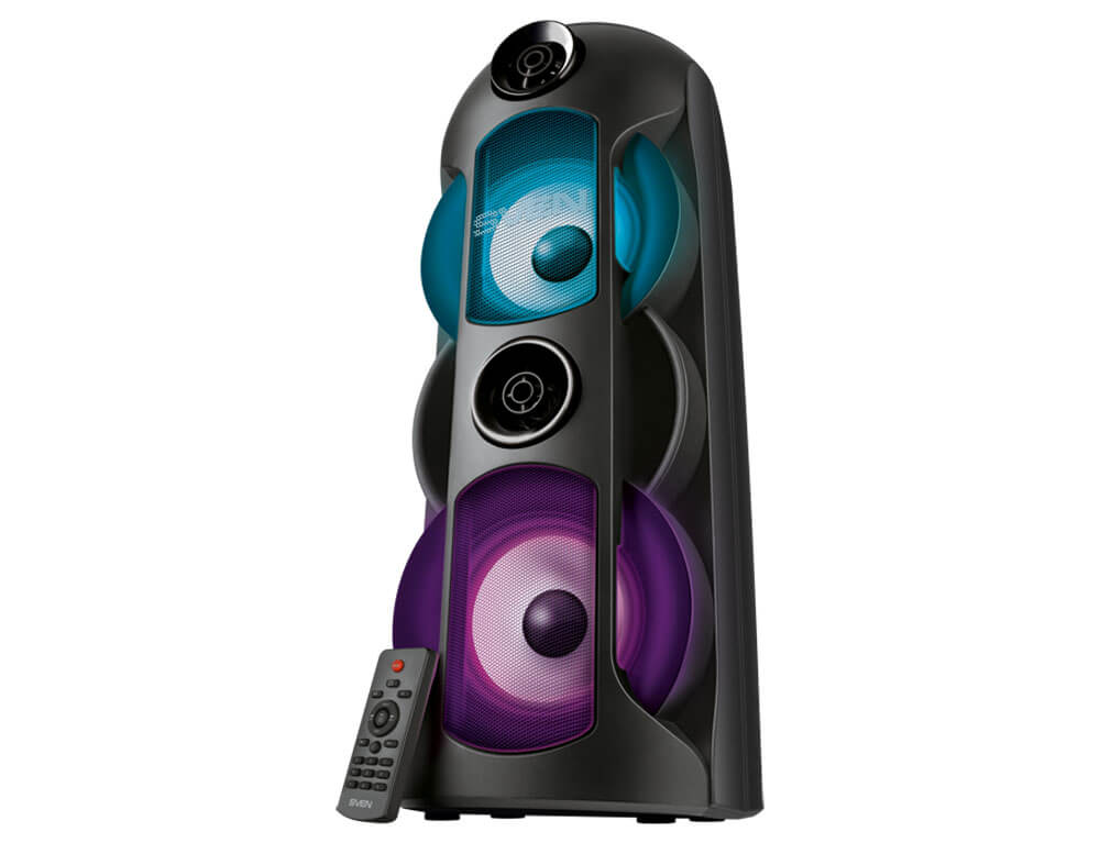 Ηχείο Bluetooth Sven PS-720 - 80W, Με FM radio, δύο υποδοχές μικροφώνου για karaoke, υποστήριξη USB flash και microSD, τηλεχειριστήριο και RGB φωτισμό