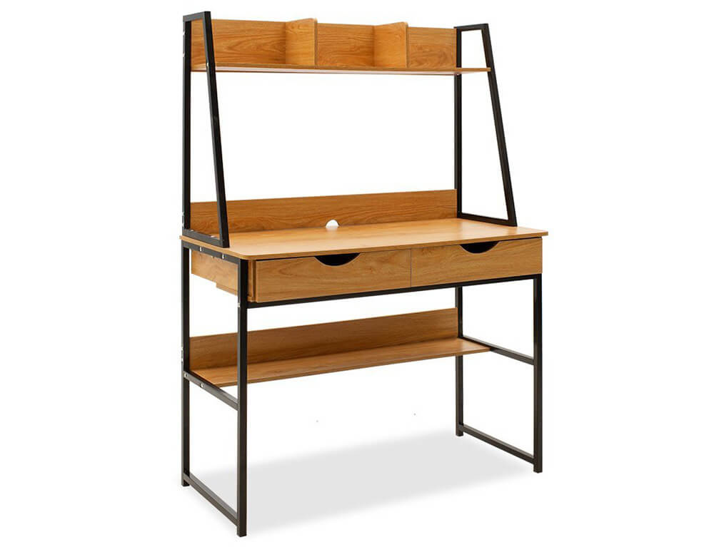 Γραφείο Ryan pakoworld με ραφιέρα και συρτάρια-MDF χρώμα κερασί oak-μαύρο 100 x 48 x 138εκ