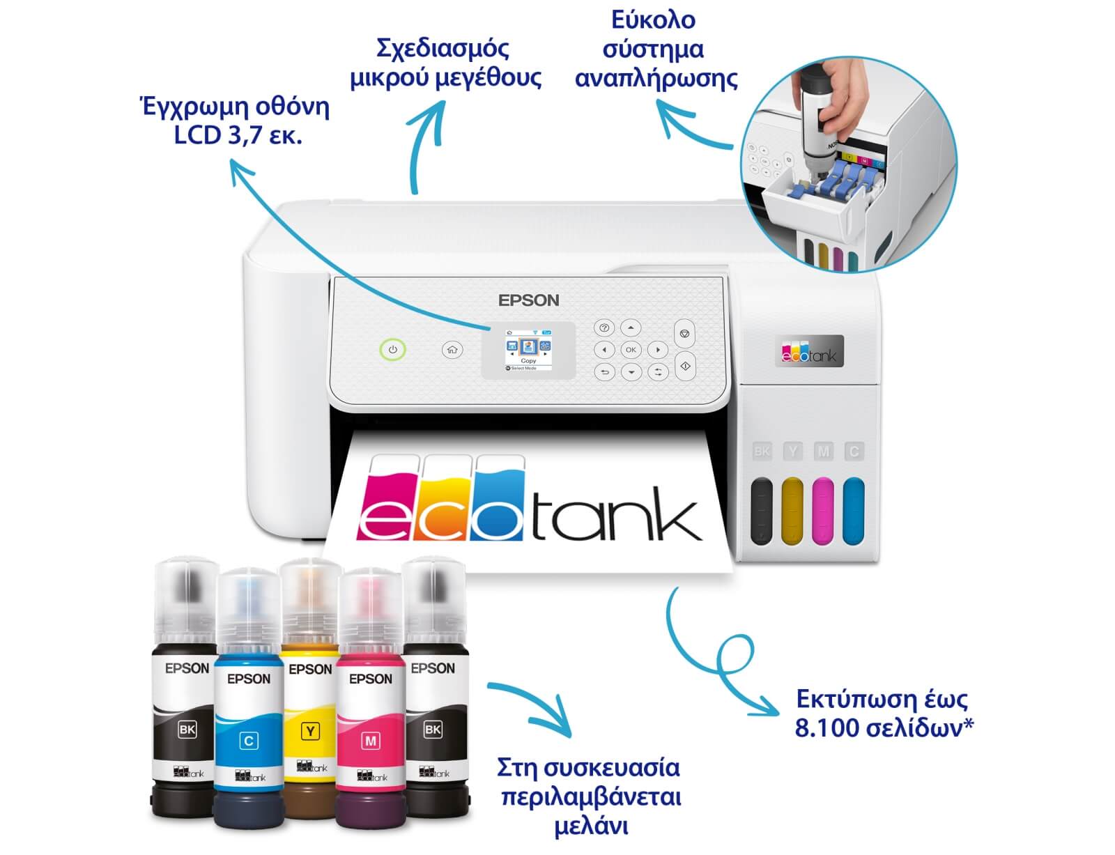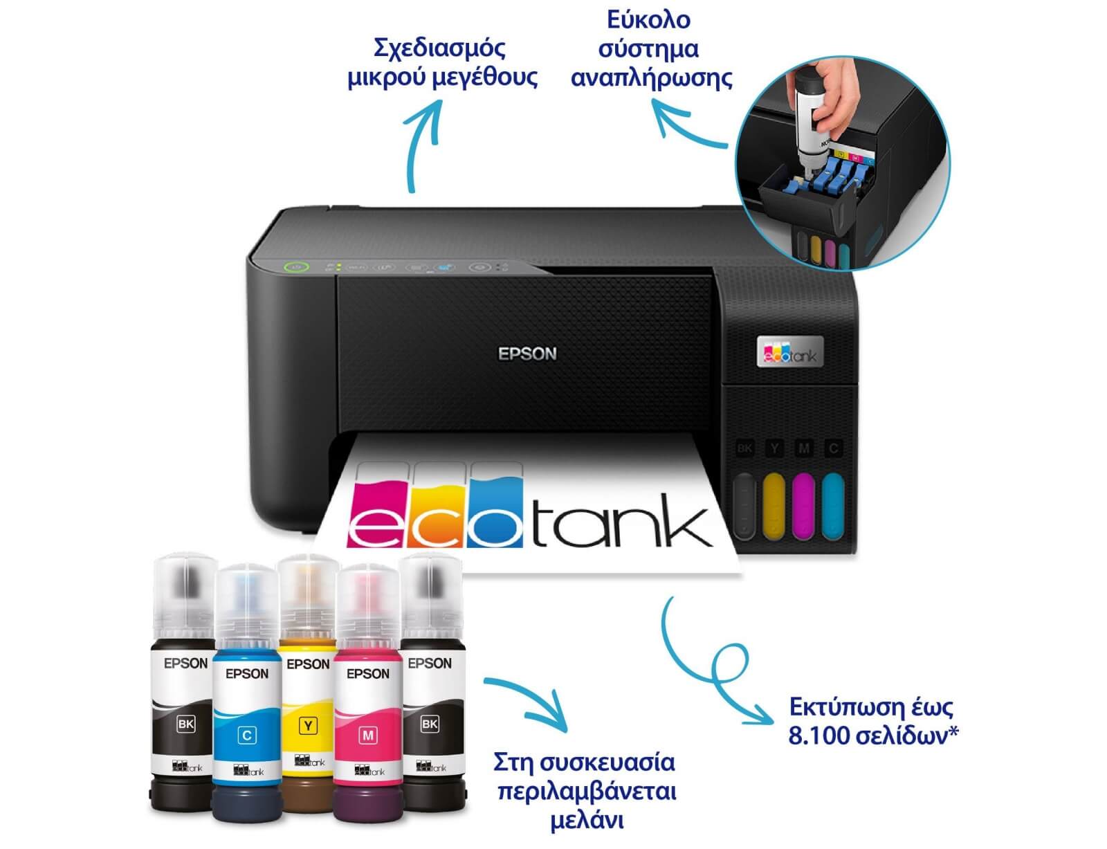 Έγχρωμο Πολυμηχάνημα Inkjet Epson EcoTank L3270 (C11CJ67434) - A4 - Εκτύπωση, Σάρωση, Aντιγραφή - 5.760 x 1.440 dpi, 33ppm - USB, WiFi, Wi-Fi Direct