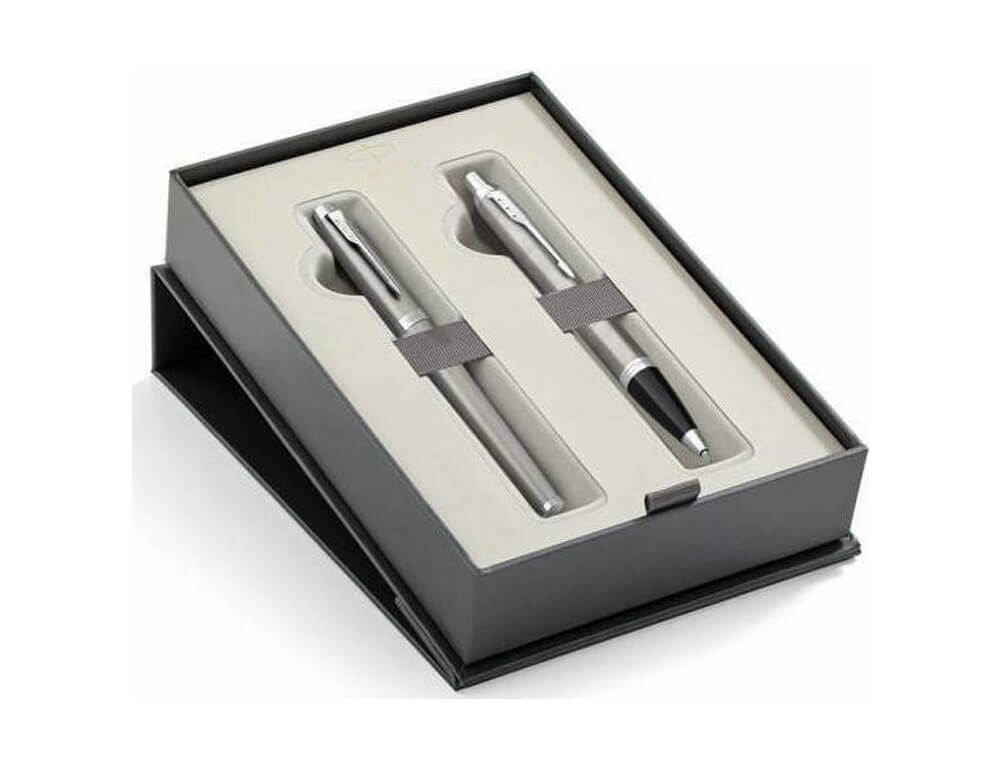 Σετ δώρου Στυλό Parker Ballpoint & Rollerball IM Essential Stainless Steel - Silver - Χρώμα γραφής Μπλε