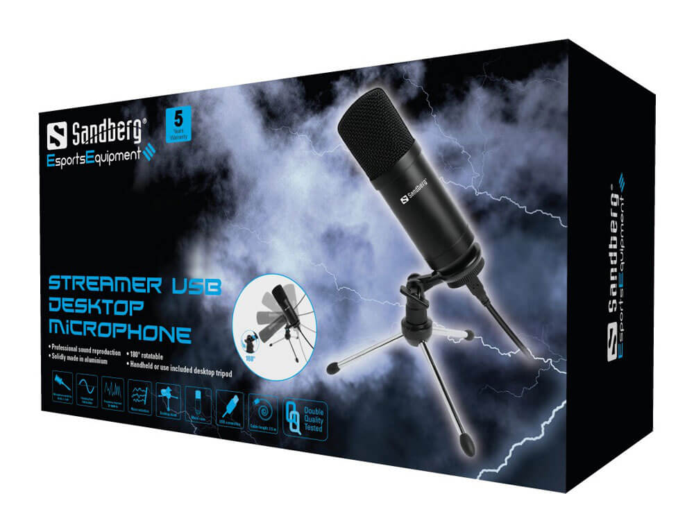 Το μικρόφωνο Sandberg Streamer USB Desktop Microphone είναι ένα εξαιρετικό μικρόφωνο που καταγράφει ήχο εξαιρετικής ποιότητας, για τον απαιτητικό παίκτη ή παραγωγό βίντεο. Είναι κατασκευασμένο από ανθεκτικό μέταλλο και μπορείτε να το χρησιμοποιήσετε κρατώντας το στο χέρι ή τοποθετώντας το στον βολικό τρίποδα που περιλαμβάνεται. Συνδέεται στον υπολογιστή σας (PC) μέσω θύρας USB και λειτουργεί απευθείας, χωρίς να χρειάζεται εγκατάσταση προγράμματος οδήγησης.