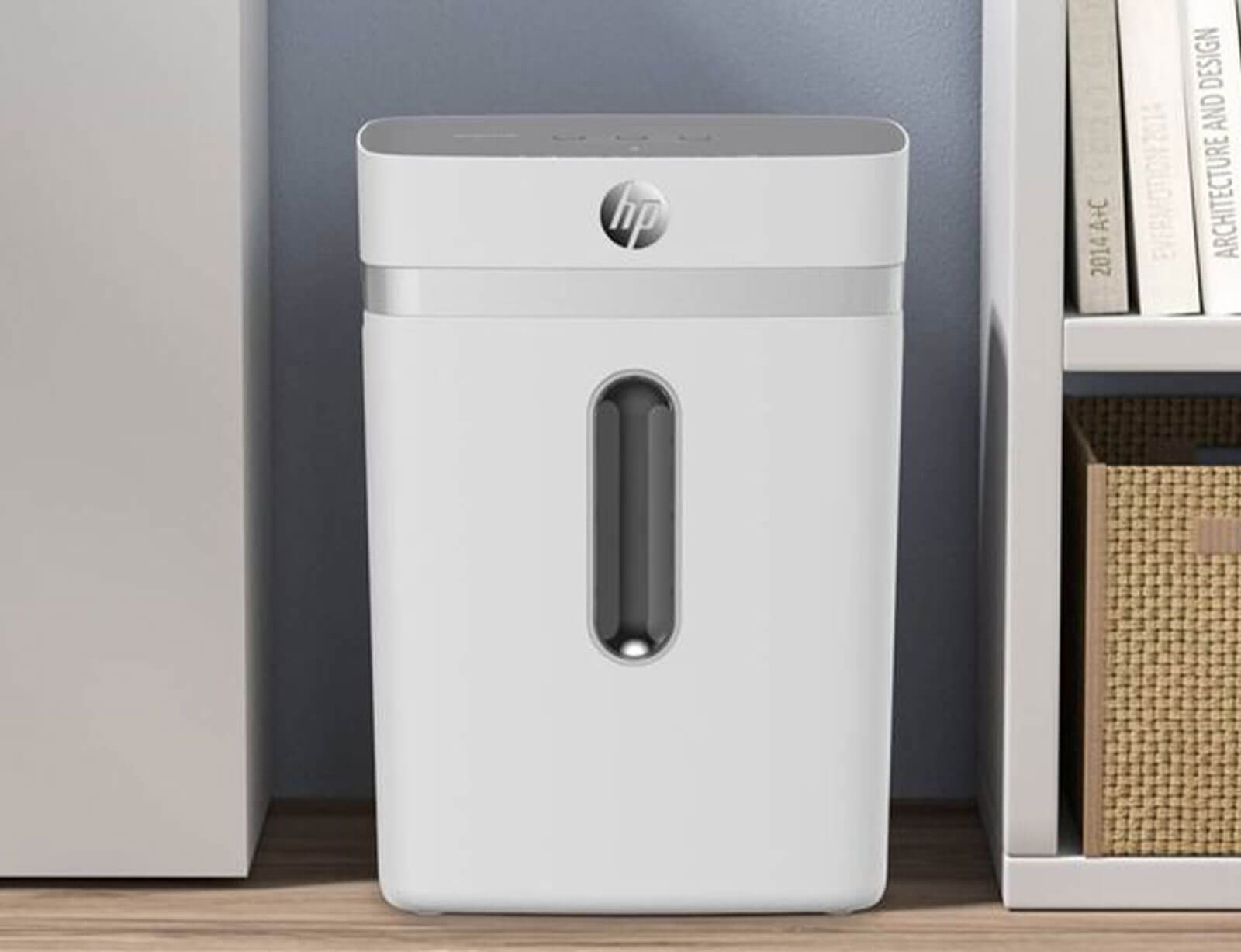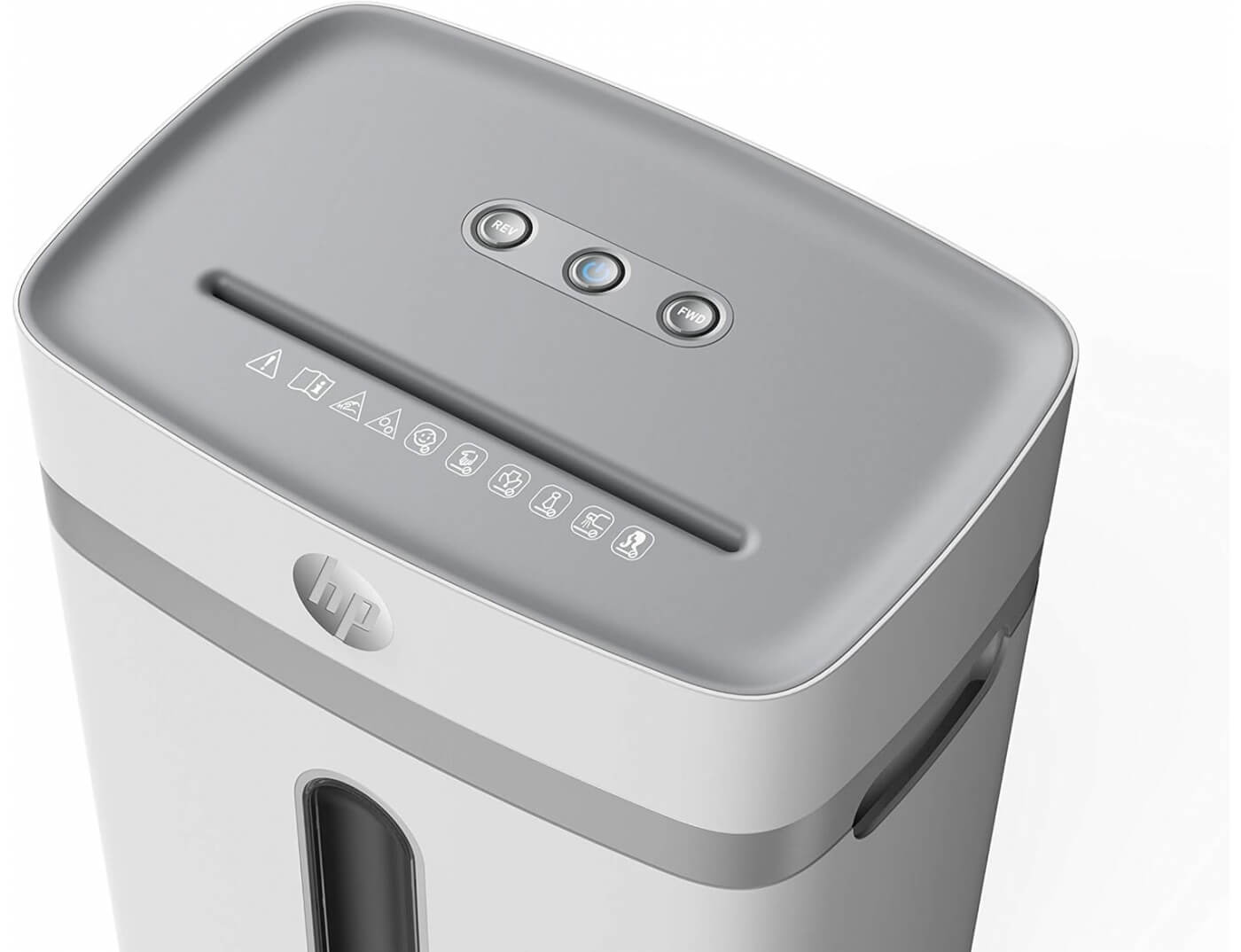 Καταστροφέας εγγράφων HP OneShred 12CC–2802, επιπέδου ασφαλείας P4 με ατσάλινες λεπίδες και κάδο χωρητικότητας 23 λίτρων.