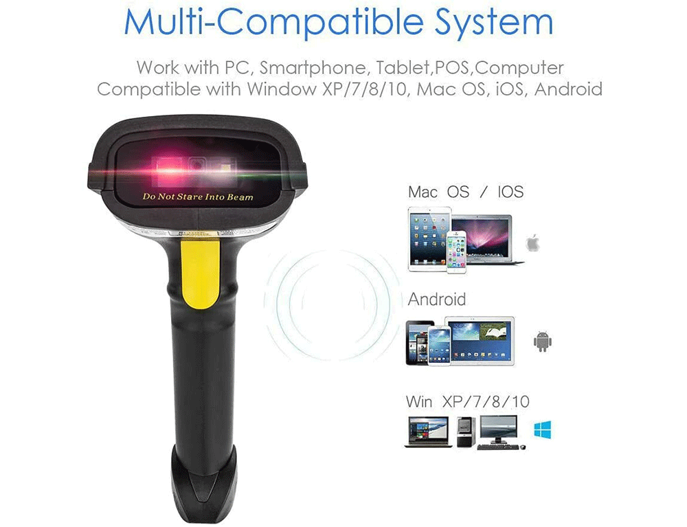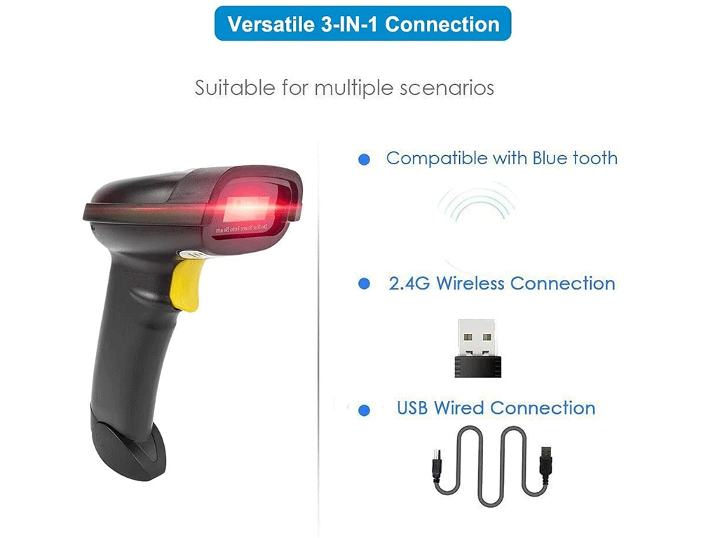 - Ο σαρωτής μπορεί να λειτουργήσει μέσω καλωδίου bluetooth ή USB. Πολύ εύκολο για σύζευξη bluetooth. Εάν χρησιμοποιείτε τη συσκευή ανάγνωσης γραμμικού κώδικα μέσω καλωδίου USB, συνδέεται και παίζει.