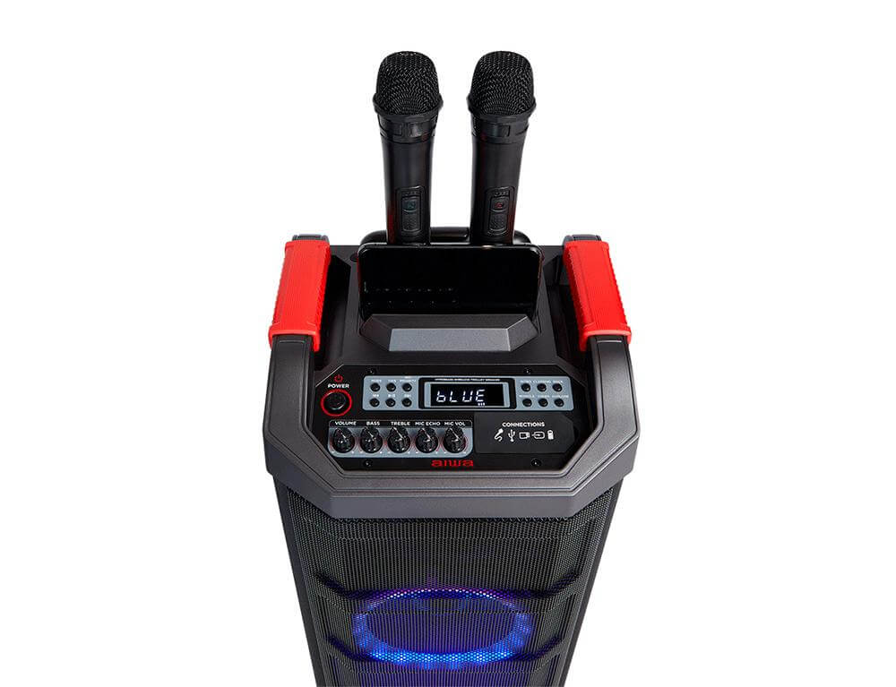 - Ενσωματωμένο σύστημα φωτισμού ηχείων πάρτι RGB-LED.