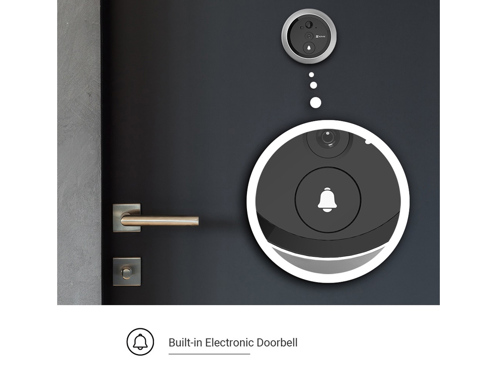 Η DP2C, μία κάμερα-ματάκι και κουδούνι πόρτας δύο-σε-ένα, διαθέτει κομψό μοντέρνο σχεδιασμό, καθώς και πολλαπλά προηγμένα χαρακτηριστικά για την ασφάλεια της πόρτας σας. Απολαύστε καθαρή εικόνα, έξυπνες λειτουργίες και την ικανότητα να βλέπετε και να μιλάτε στους επισκέπτες μέσω της έγχρωμης οθόνης εσωτερικού χώρου. Επίσης, χρησιμοποιήστε την εφαρμογή EZVIZ στην κινητή σας συσκευή για να λαμβάνετε ειδοποιήσεις για κάθε ύποπτη δραστηριότητα κοντά στην πόρτα σας.