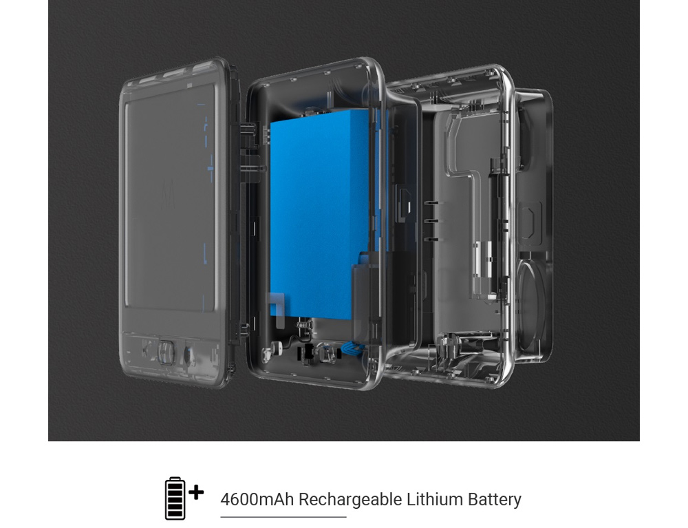 Εξοπλισμένη με ενσωματωμένη επαναφορτιζόμενη μπαταρία λιθίου 4.600 mAh, η DP2C δεν χρειάζεται καμία περίπλοκη καλωδίωση. Ο παρατεταμένος χρόνος αναμονής φτάνει έως και τις 90 ημέρες με την έξυπνη λειτουργία εξοικονόμησης ενέργειας.