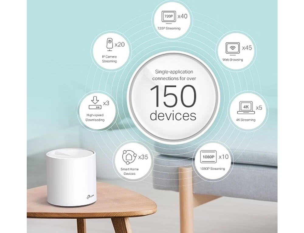 πιΤο access point Deco X60 V3.2 της TP-LINK είναι χρήσιμο για τη δημιουργία ή την επέκταση ενός ασύρματου δικτύου για τη σύνδεση πολλαπλών συσκευών. Υποστηρίζει WiFi mesh, πρόκειται δηλαδή για ένα ολοκληρωμένο οικιακό σύστημα WiFi με πολλαπλά σημεία πρόσβασης που έχει κατασκευαστεί για να εξαλείψει τις νεκρές ζώνες και να παρέχει απρόσκοπτο WiFi στο σπίτι, με υψηλότερες ταχύτητες και περισσότερες συσκευές. Εκπέμπει σήμα σε δύο συχνότητες, 2.4 & 5GHz. Προσφέρει υψηλότερες ταχύτητες σε σχέση με τα single band και σύνδεση περισσότερων συσκευών. Η 2.4Ghz συχνότητα είναι η πιο διαδεδομένη και έχει μεγάλη εμβέλεια. Η 5Ghz παρέχει μεγαλύτερη ταχύτητα από την 2.4Ghz αλλά είναι πιο ευαίσθητη σε εμπόδια (π.χ. τοίχους) που μειώνουν την εμβέλεια της. Η διαφορά της αυτή αλλά και η πιο περιορισμένη χρήση της βοηθάει στο να έχει λιγότερες παρεμβολές από άλλα δίκτυα. Είναι γενιάς Wi‑Fi 6, το πιο σύγχρονο πρότυπο Wi-Fi που προσφέρει ταχύτητες έως και 40% παραπάνω από το Wi-Fi 5. Συντονίζει την επικοινωνία με τις συνδεδεμένες συσκευές ώστε να καταναλώνουν λιγότερη μπαταρία και λειτουργεί καλύτερα σε περιβάλλοντα με πολλές συσκευές Wi-Fi. Ιδανικό για σπίτια με πολλές έξυπνες συσκευές.