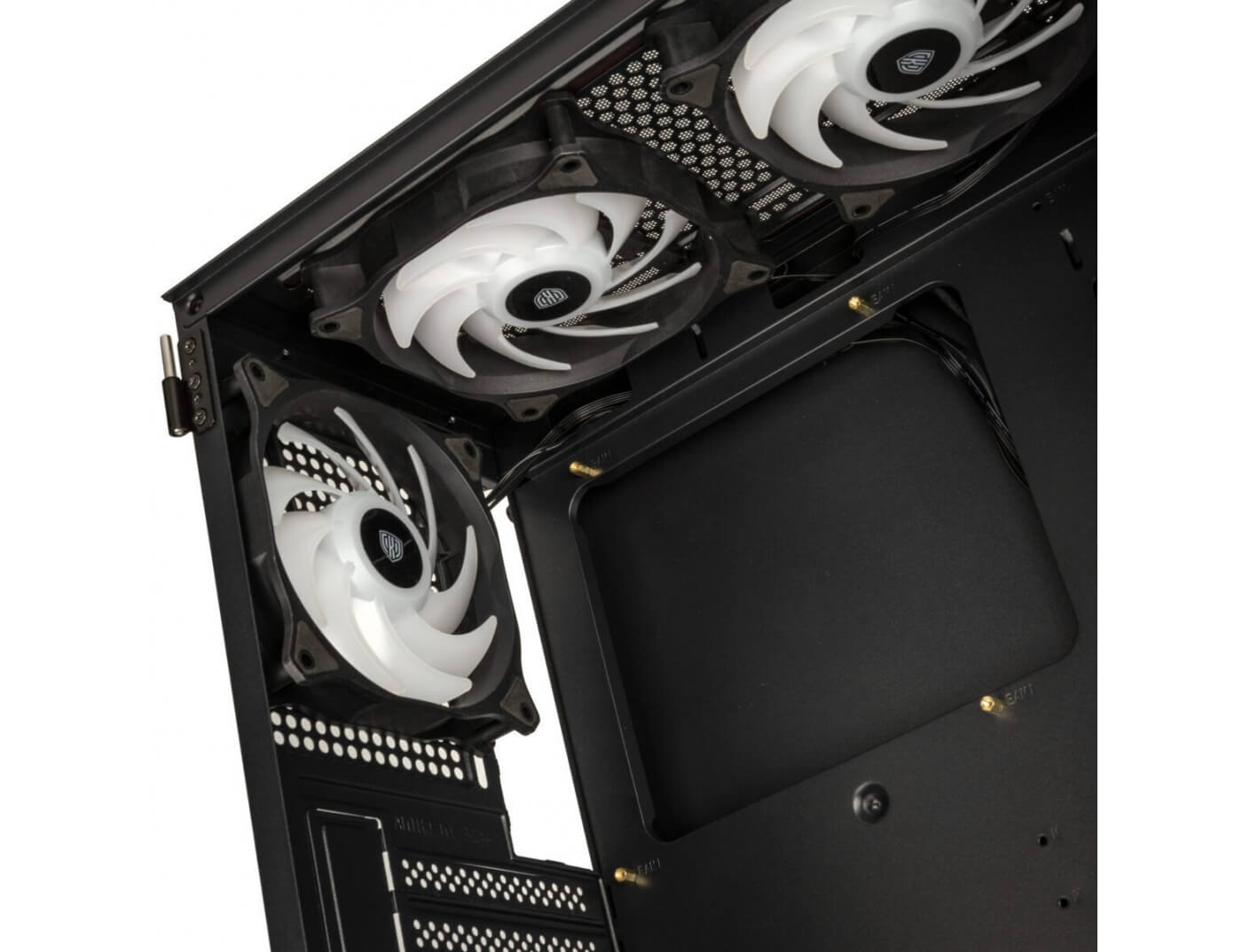 Εναλλακτικά, μπορούν να εγκατασταθούν έως και τρεις ανεμιστήρες 120 mm στο μπροστινό μέρος, ενώ δύο ανεμιστήρες 140 mm μπορούν να συνδεθούν στο πάνω μέρος. Επιπλέον, υπάρχουν υποδοχές για δύο ανεμιστήρες 120 mm στο κάλυμμα του τροφοδοτικού, οι οποίοι επιτρέπουν την άμεση ψύξη του θαλάμου του τροφοδοτικού και της κάρτας γραφικών.