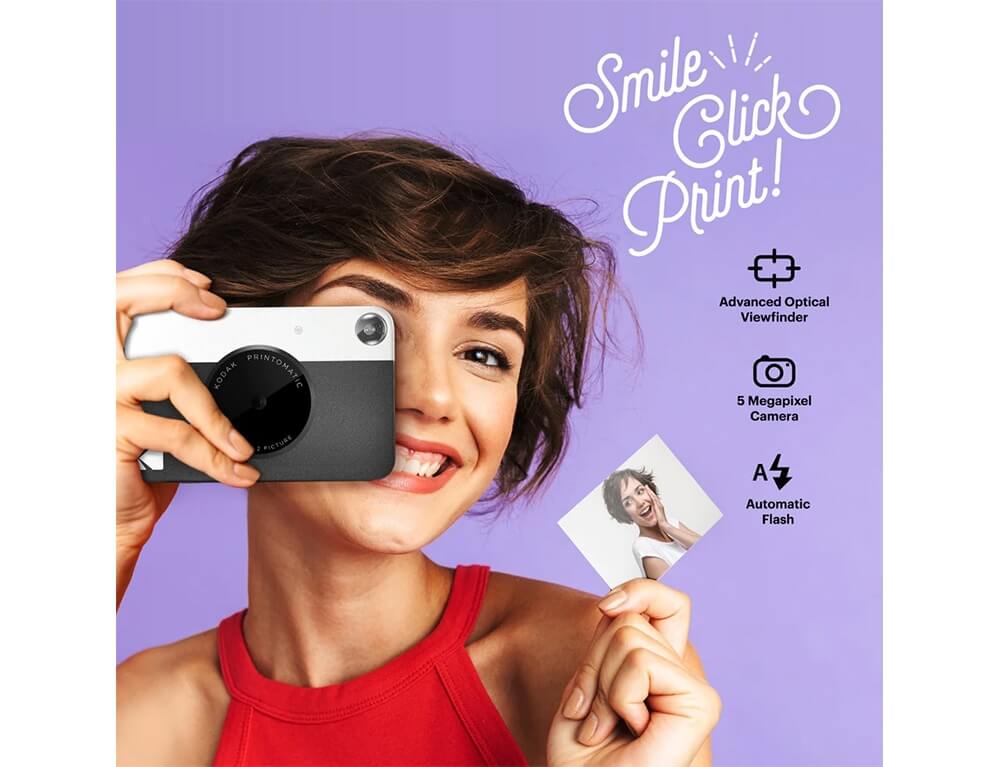 Η φωτογραφική μηχανή Printomatic εκτυπώνει άμεσα και αυτόματα φωτογραφίες πλήρως έγχρωμες φωτογραφίες υψηλής ποιότητας. Χρησιμοποιεί φωτογραφικό χαρτί Kodak Zink, επομένως δεν χρειάζονται δοχεία μελάνης ή τόνερ.