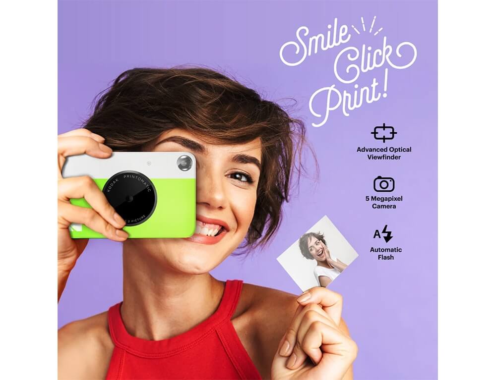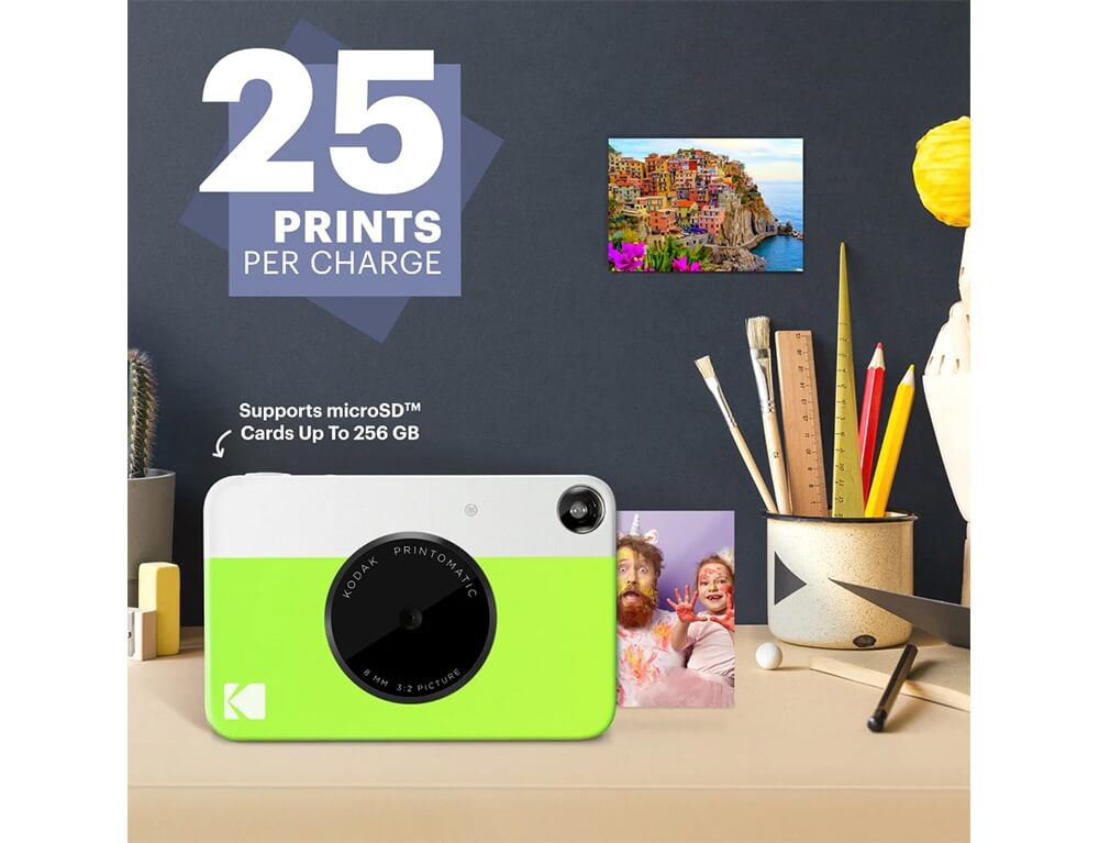 Η φωτογραφική μηχανή Printomatic εκτυπώνει άμεσα και αυτόματα φωτογραφίες πλήρως έγχρωμες φωτογραφίες υψηλής ποιότητας. Χρησιμοποιεί φωτογραφικό χαρτί Kodak Zink, επομένως δεν χρειάζονται δοχεία μελάνης ή τόνερ.