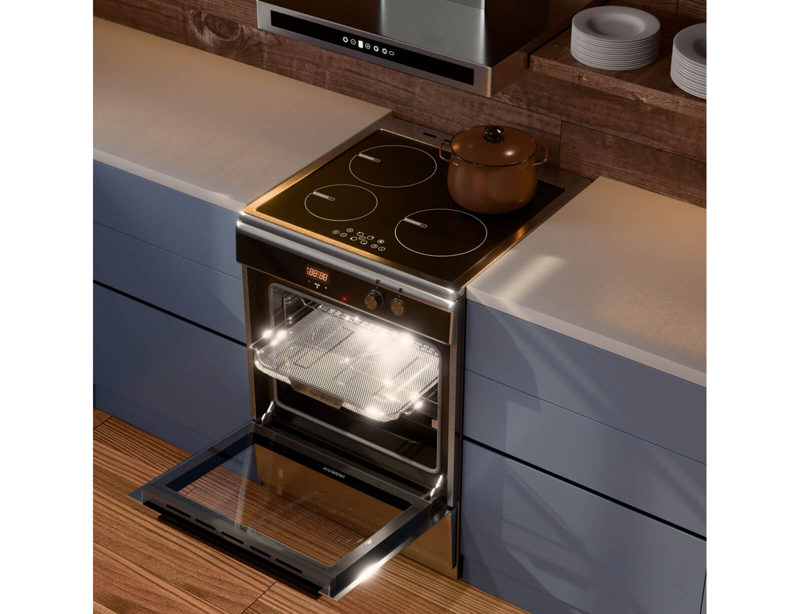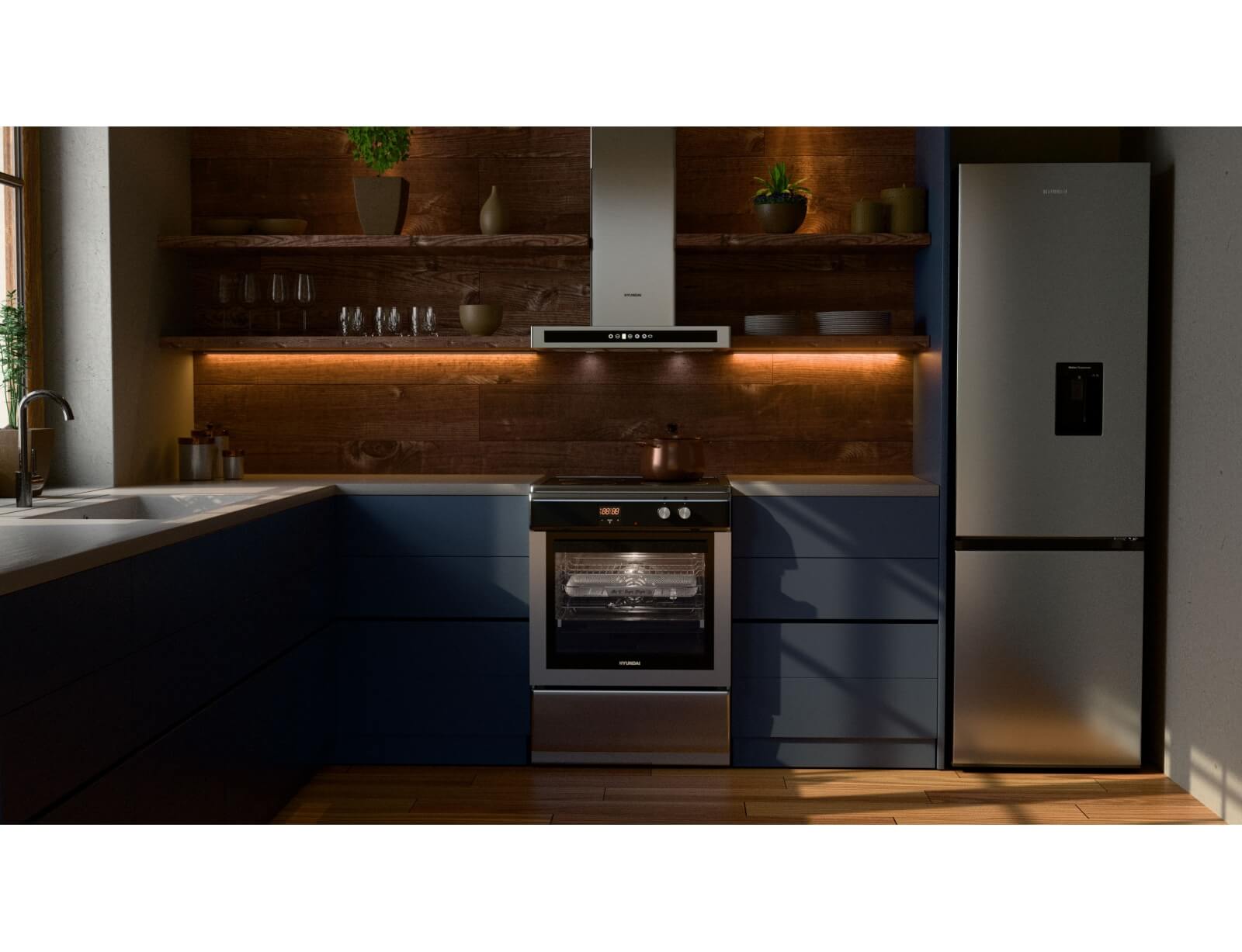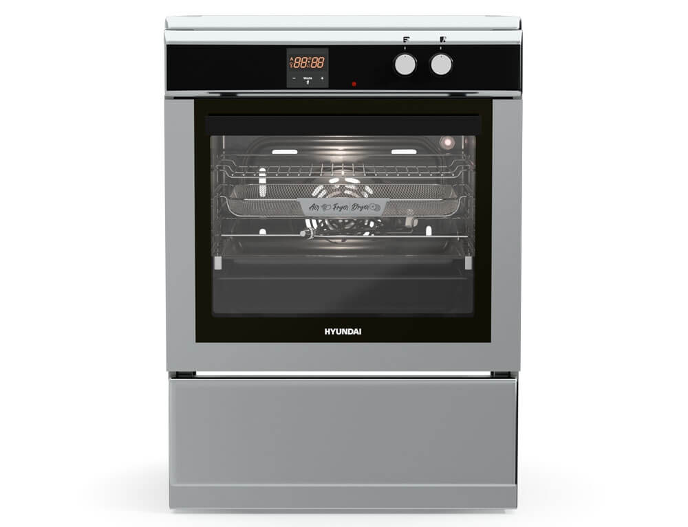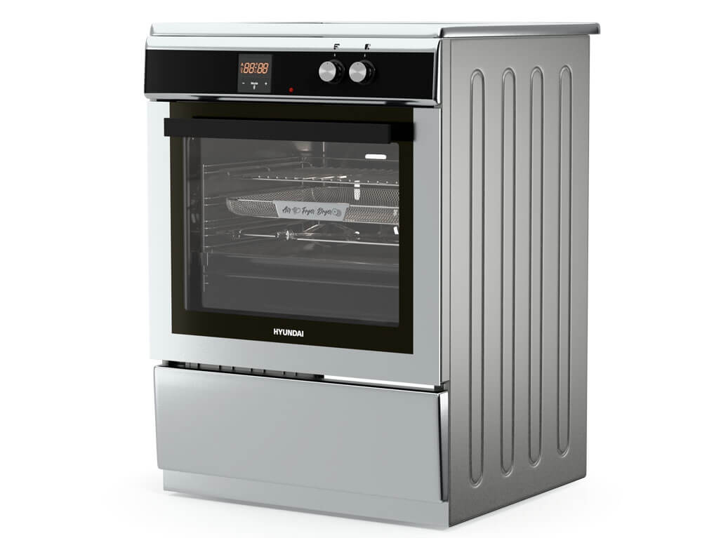 Κουζίνα Hyundai HCIN23-7261I/XT με πολυλειτουργικό φούρνο, χωρητικότητα φούρνου 69 λίτρα, ενεργειακή κλάση Α, 4 επαγωγικές εστίες και 9 λειτουργίες ψησίματος.