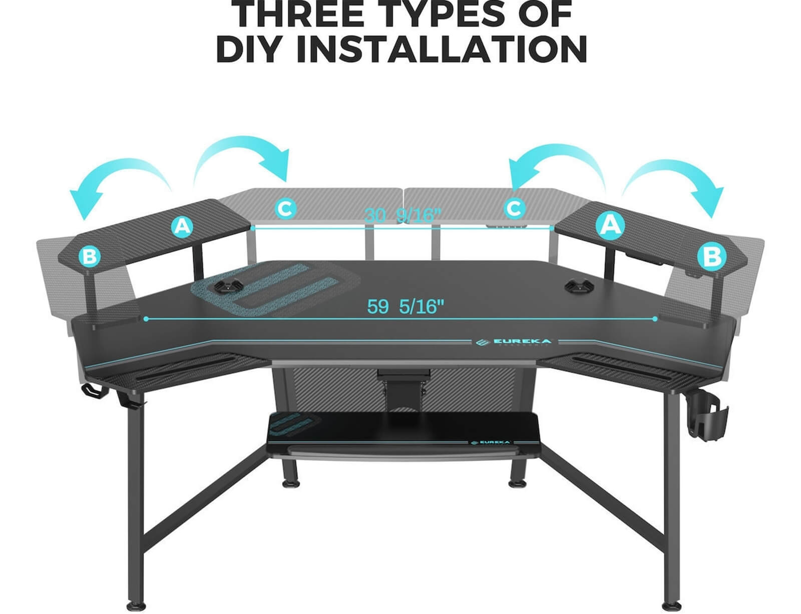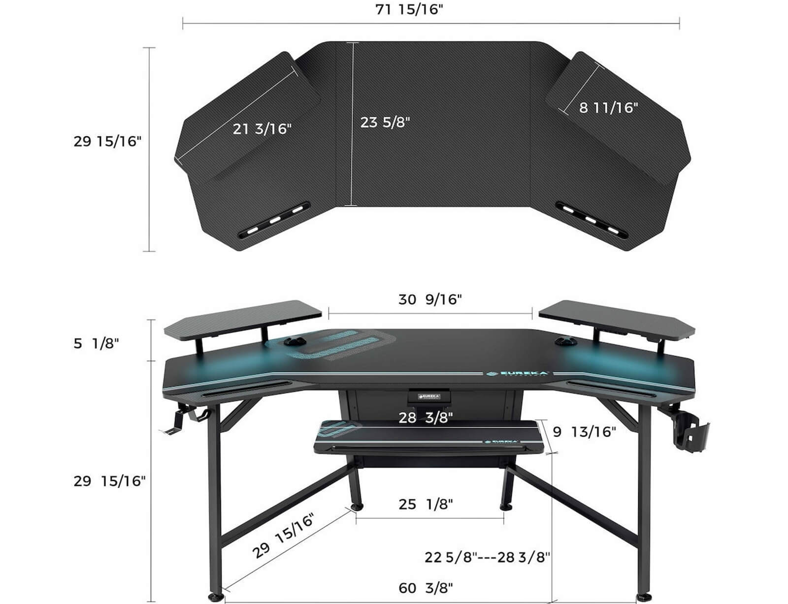 - Μεγάλη επιφάνεια εργασίας 180 x 75 cm με πλήρης επιφάνεια ποντικιού