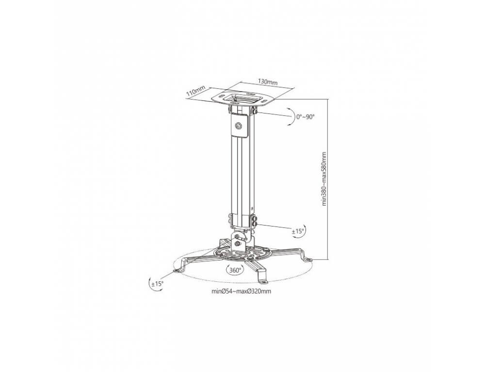 Εικόνα Βάση Projector Οροφής Brateck PRB-18S - 360° Περιστροφή - Μέγιστο Φορτίο 15kg - Ασημί - Λευκό